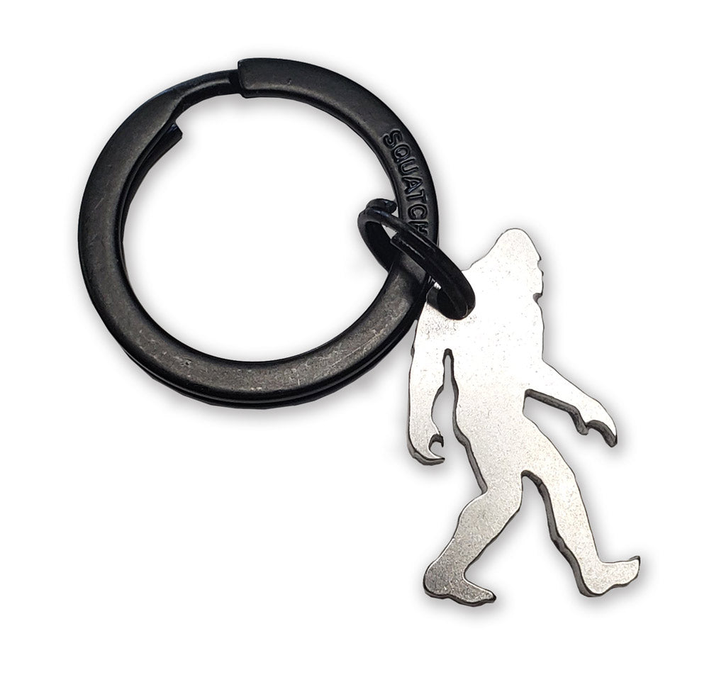 1 x 0.5" Sasquatch Bottle Opener. Laser-cut stainless steel, stone tumbled for a weathered, distressed matte finish. This is cut from heavy 10 gauge Stainless - indestructible. This Keychain charm includes our branded SQUATCH metal splitring key chain. DESIGNED AND MANUFACTURED IN THE USA.