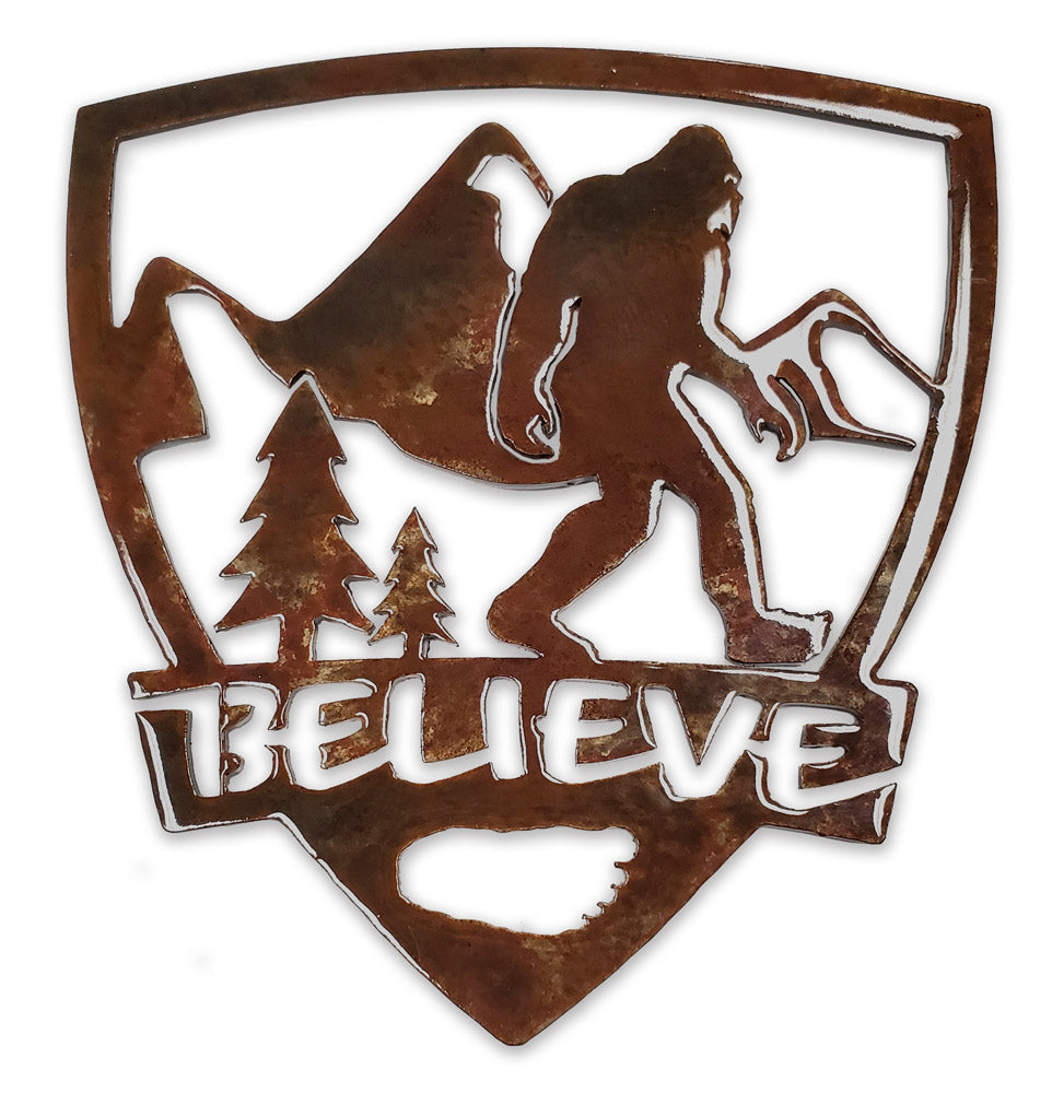 Redwood Tree With Bigfoot Stainless Steel Stand-Up 11" Tall - Metal Art