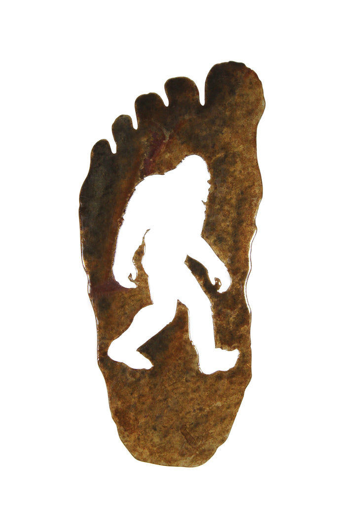 This Bigfoot footprint magnet is laser-cut out of steel and has a false patina applied. Measures 6 3/4 inches high with three 3/4 inch round magnets glued on the back. Made in the USA. Finish may vary slightly due to the process involved.