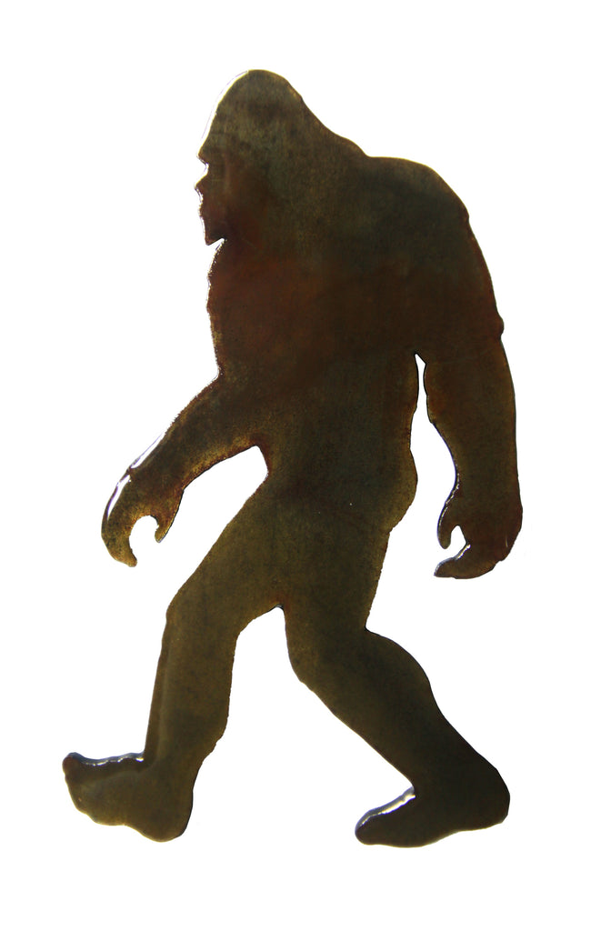 This Bigfoot magnet is laser-cut out of steel and has a false bronze patina applied. Measures 3.25 inches high with two 3/4 inch round magnets glued on the back. Made in the USA. Finish may vary slightly due to the process involved.