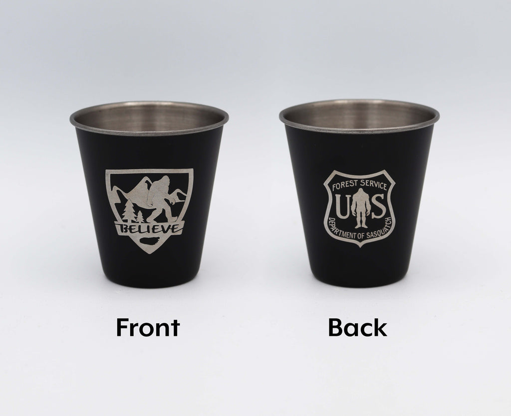 1, 2, 3.. cheers! Grab the perfect shot glass for that special moment. Designed in-house, this stainless steel shot glass comfortably holds 2 fluid ounces. The durable overlay printing features a graphic on two sides of the shot glass. Pick your favorite design; they're sure to last round after round.