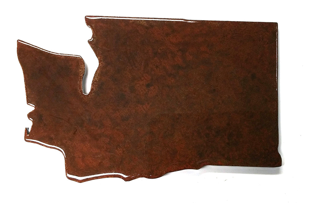Laser-cut steel, stone tumbled and finished with Squatch Metalworks proprietary distressed metal patina treatment and clear coated with durable auto clear-coat. A very strong Rare Earth Magnet is glued on the back. Variations in the color add interest and beauty to these unique magnets. DESIGNED AND MADE IN THE USA