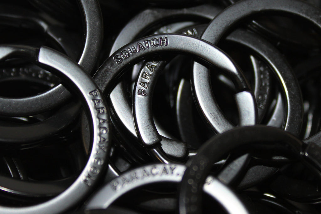 Laser-cut stainless steel, stone tumbled for a weathered, distressed matte finish. This is cut from heavy 10 gauge Stainless - indestructible. This Keychain charm includes our branded SQUATCH metal splitring key chain. DESIGNED AND MANUFACTURED IN THE USA.